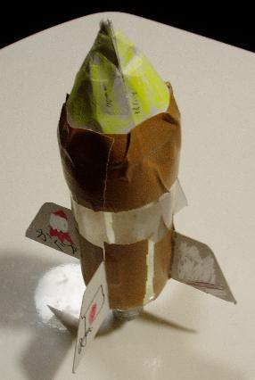 JAXAの方指導のもと、炭酸飲料用(500ml)のペットボトルで空気ロケットを作って飛ばしました。 他にも以下について教えてもらいました。 1.宇宙について →・空気が無い真空状態 ・エンジンを切った乗り物の中は無重力 ・温度差が激しい ・有害な宇宙放射線が直接あたる ・高速で宇宙デブリ(ごみ)が飛び交う 2.ロケットについて (1)日本のロケット →・H-ⅡAなど、燃料は液体酸素、液体水素 (2)ロケットの原理 →・運動量保存の法則 (3)簡易ロケットの飛ぶ原料 →・プチロケット(炭酸ガス、アルコールガスなど) ・風船ロケット、空気ロケット、水ロケット(加圧された空気、水など) ・モデルロケット(火薬燃料)