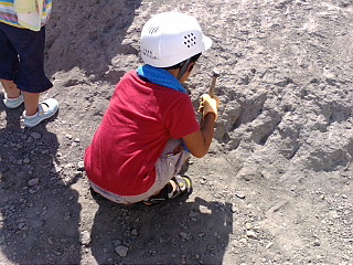発掘体験の指導をしている方はフタバスズキリュウの発見者の方でした。